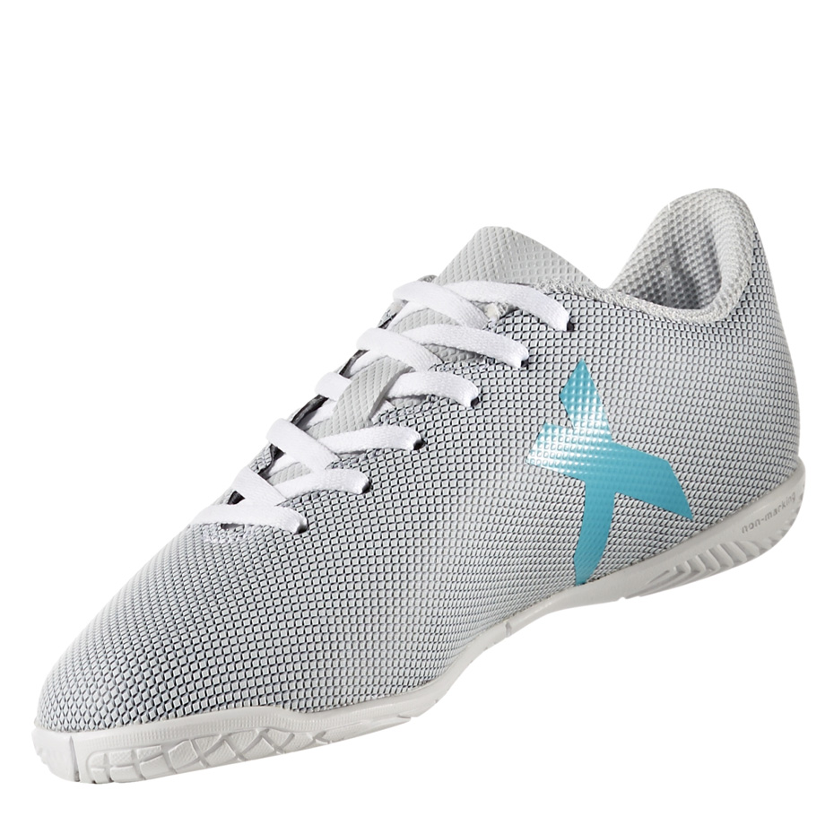Juniorskie buty piłkarskie adidas X 16.4 IN przeznaczone do rekreacyjnej gry na halach sportowych. Pochodzą z kolekcji Nemeziz. Obuwie wyposażone zostało w miękką cholewkę Chaos Feel. Nowoczesna podeszwa z technologią NON MARKING nie zostawia śladów na parkiecie. Technologia Agion, która zapobiega rozwijaniu się bakterii w środku buta.