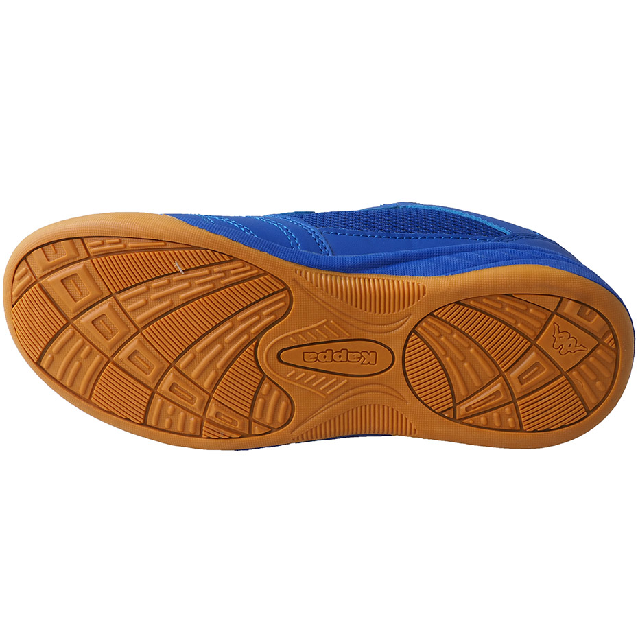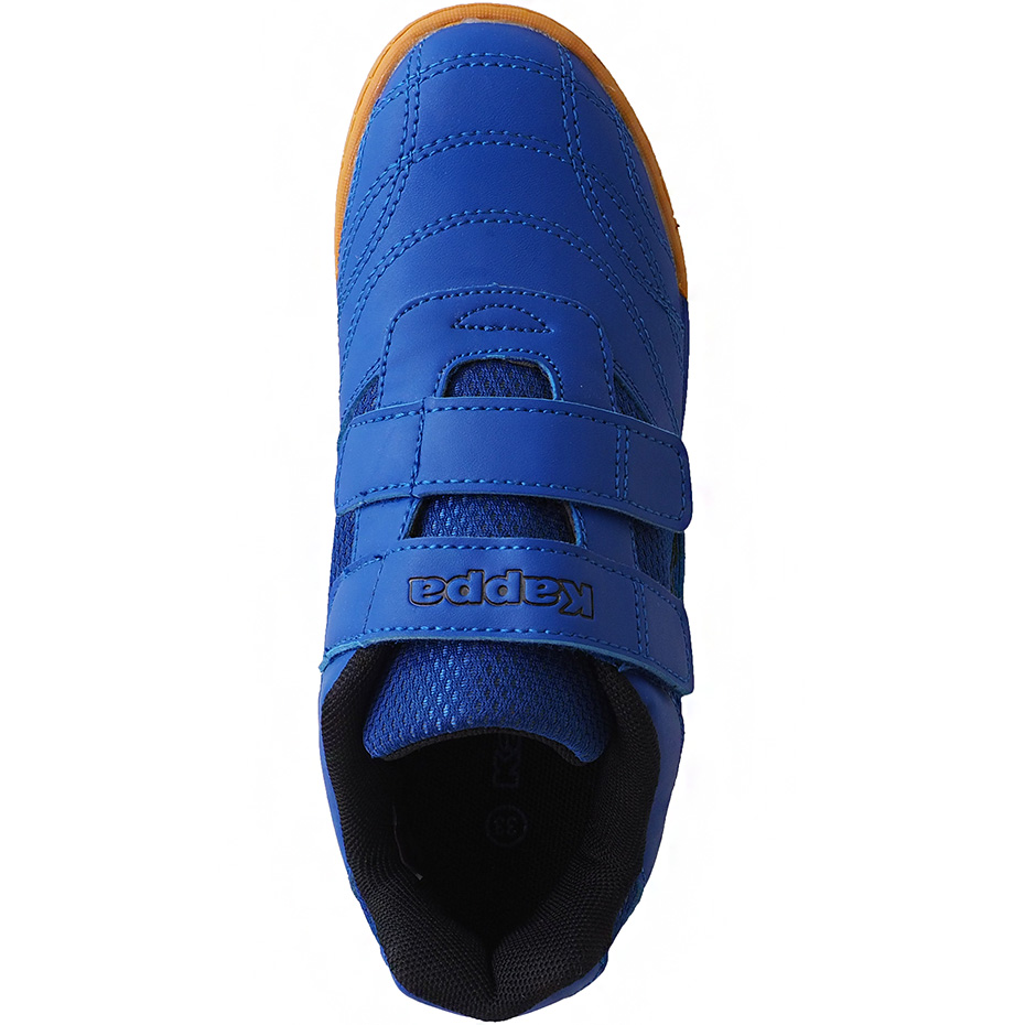Dziecięce halówki Kappa zaprojektowano dla początkujących graczy i najmłodszych miłośników halowych sportów. Niebieska konstrukcja w połączeniu z czarnymi detalami tworzy dynamiczną sylwetkę butów piłkarskich dla dzieci. Syntetyczna cholewka z klasycznymi przeszyciami i siateczkowymi panelami. Zapięcie na dwa paski na rzep. Tekstylna wyściółka. Wyjmowana wkładka. Solidna, gumowa podeszwa.