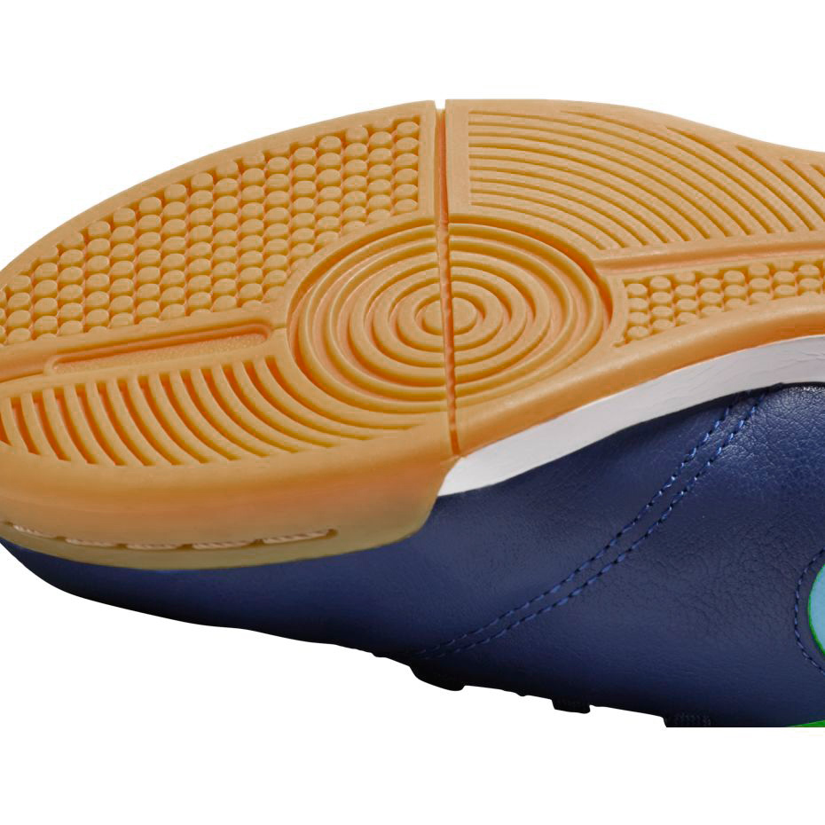 Juniorskie buty piłkarskie Nike Tiempo Legend VI przeznaczone są do gry na hali. Zastosowanie wysokiej jakości materiałów przekłada się na komfort gry w trakcie meczu czy treningu, co umożliwia zwiększanie swoich umiejętności przez cały czas. Buty wykonane z miękkiej skóry naturalnej, dzięki czemu dobrze dopasowują się do stopy, dając maksymalny komfort. Tekstylna wyściółka stabilnie trzyma stopę w bucie, dając większe bezpieczeństwo podczas ruchu. Profilowana wkładka odzwierciedla kształt stopy zapewniając dodatkową amortyzację.