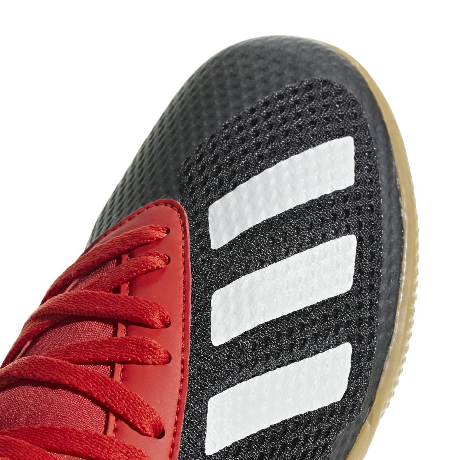 Juniorskie buty piłkarskie adidas X 18.3 przeznaczone są do gry na halach sportowych. Dedykowane są zawodnikom na poziomie półamatorskim. Dwuwarstwowa cholewka z siateczki współpracuje z stopą. Niski krój z charakterystycznym fasonem Clawcollar blokuje stopę. Zewnętrzna podeszwa dba o prawidłową przyczepność. Półamatorskie halówki adidas z kolekcji Initiator Pack.