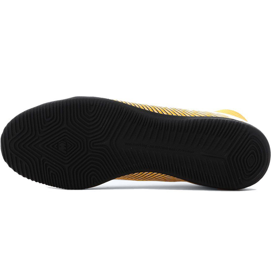 Męskie buty piłkarskie Nike Mercurial pochodzące z limitowanej kolekcji przeznaczone są do gry na hali sportowej. Syntetyczna cholewka ułatwia kontakt z piłką. Konstrukcja z wewnętrznym zapiętkiem wpływa na komfort noszenia. Gumowa podeszwa gwarantuje przyczepność. Dopasowanie i amortyzacje zapewnia niskoprofilowy kołnierz Dynamic Fit. Poziom: amator.