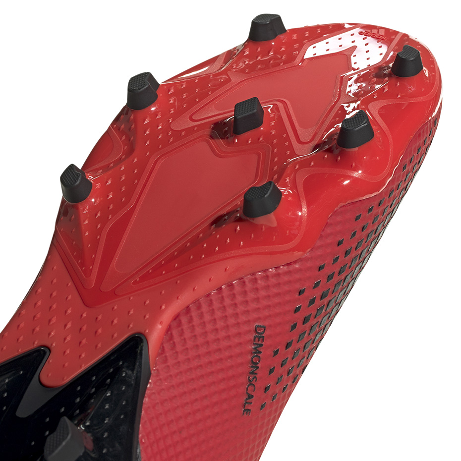 Buty piłkarskie adidas dla mężczyzn z linii Predator pochodzące z kolekcji Inflight Pack przeznaczone są do gry na naturalnej nawierzchni trawiastej. Cholewka Demonscale z wytłoczonym wzorem wykonana jest z powlekanego materiału tekstylnego. Kołnierz w modelu lepiej dopasowuje się do stopy. Odpowiednia konstrukcja kołków zapewnia przyczepność. Poziom: półamatorski.