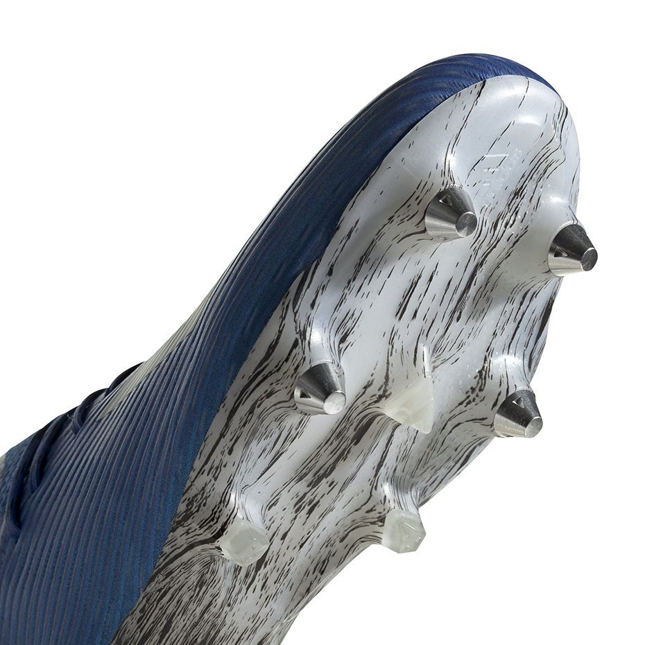 Zaawansowane technicznie męskie korki adidas X łączą innowacyjne rozwiązania i oryginalny, niepowtarzalny design. Prezentowany model z kolekcji Mutator Pack zyskał intensywny kolor niebieski z matowym wykończeniem i kamuflażowym deseniem. Białe paski tworzące nowoczesne logo brandu. Lekka konstrukcja z siateczkową cholewką. Syntetyczne wykończenie w formie cienkiej powłoki. Obniżony kołnierz Clawcollar. Asymetryczne sznurowanie. Zewnętrzna podeszwa z wkręcanymi kołkami. Profesjonalne buty piłkarskie na naturalną nawierzchnię. Ambasadorami linii adidas X są Gabriel Jesus, Mohamed Salah, Gareth Bale i Thomas Muller.