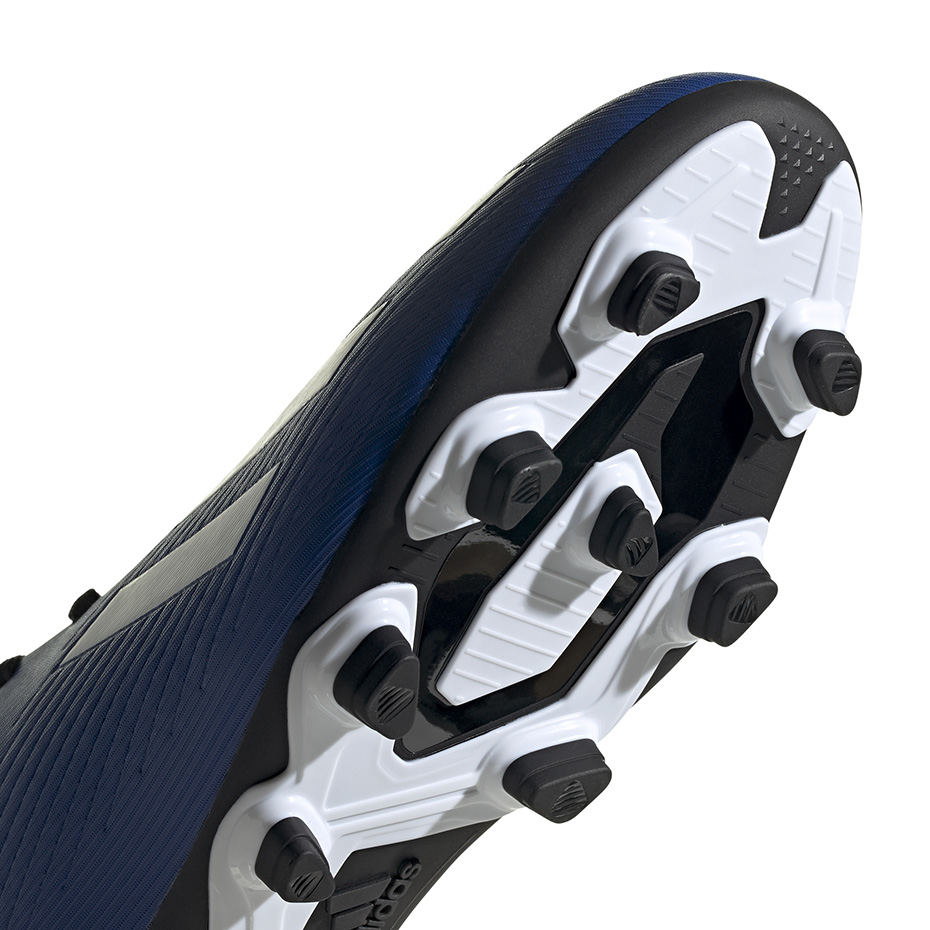 Męskie buty piłkarskie adidas X 19.4 pochodzą z kolekcji Mutator Pack. Przeznaczone są do gry na sztucznej oraz naturalnej nawierzchni trawiastej. Syntetyczna cholewka odpowiada za kontakt z piłką. Specjalistyczna podeszwa gwarantuje przyczepność. Wykonane w kolorze niebieskim z akcentem czarnego oraz białego. Poziom: amatorski.