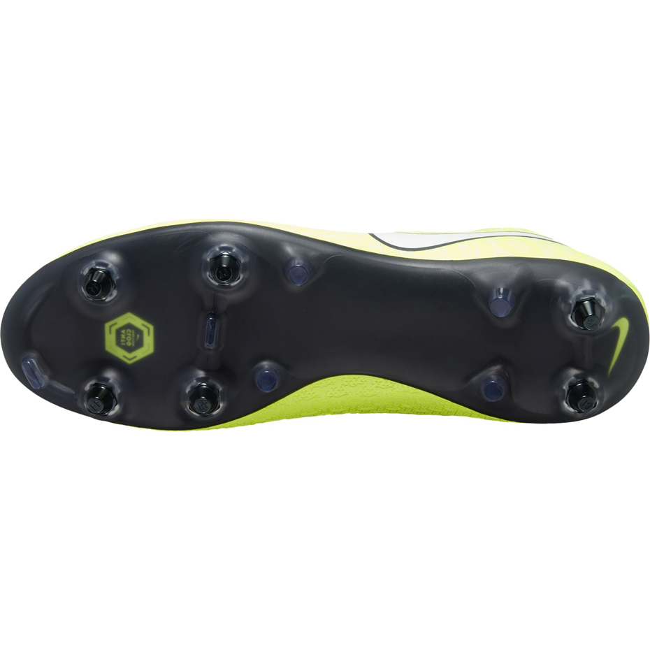 Męskie korki wkręty Nike z kolekcji New Lights doskonale sprawdzą się podczas półamatorskich rozgrywek na mokrej, błotnistej murawie, gdzie wymagane jest maksimum przyczepności. Buty piłkarskie Nike prezentują nowoczesny koncept w energetycznym, neonowym kolorze zieleni z biało-czarnymi detalami. Technologicznie zaawansowana cholewka z materiałów syntetycznych i tkaniny. Kołnierz DynamicFit pozwala na lepsze dopasowanie i stabilizację stopy. System unikalnego wiązania GhostLace w połączeniu ze skarpetą QuadFit Mesh zapewnia wysoki komfort. Wyprofilowana wkładka, odzwierciedlająca anatomiczną linię stopy amortyzuje i zmniejsza nacisk korków na stopę. Rozbudowana podeszwa Synergia Pro Anti Clog gwarantuje znakomitą przyczepność na mokrych murawach.