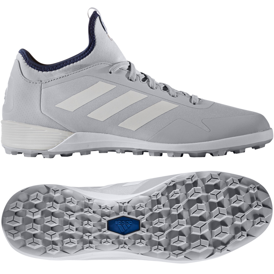 Męskie buty piłkarskie adidas Ace Tango 17.2 z podeszwą TF przeznaczoną do gry na sztucznej nawierzchni (np.orlik). Pochodzą z kolekcji Blue Blast Q1 2017. Wyposażone w nylonową cholewką. Mają niebrudzącą gumową podeszwę zewnętrzną z elastycznymi nacięciami.