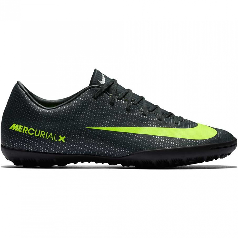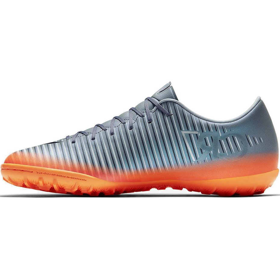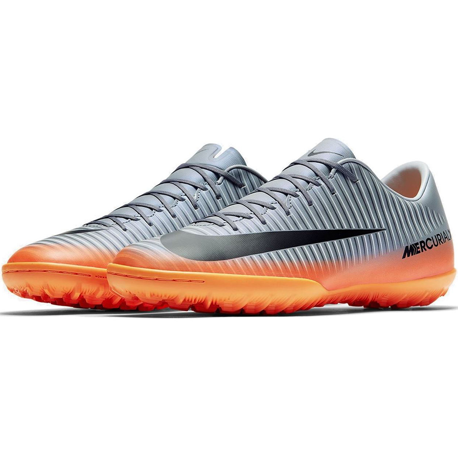 Męskie buty piłkarskie Nike MercurialX Victory VI z najnowszej kolekcji CR7 z podeszwą TF. Przeznaczone są do gry na orlikach oraz innych boiskach ze sztuczną trawą. Zostały wykonane z miękkiej syntetycznej skóry, która odpowiada za trwałość oraz lepsze czucie piłki. Twarzą linii Mercurial jest znany na całym świecie piłkarz Cristiano Ronaldo.